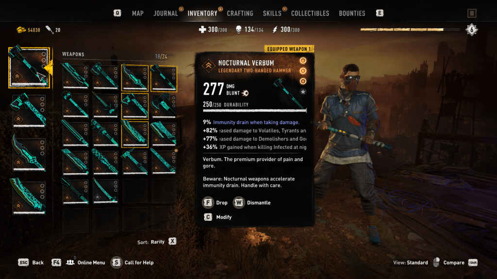 Description: Nocturnal Weapons are a new weapon type to Dying Light 2, designed to elevate the gameplay experience during nighttime. With 15 years of post-apocalyptic survival, the survivors of Villedor have unearthed the secrets to enhancing their weaponry specifically for the night. These weapons encourage players to engage in nighttime activities due to their unique stats that are unparalleled in the game, presenting a high-risk, high-reward dynamic. While they come with detrimental effects that accelerate the player’s immunity reduction, they also feature beneficial attributes that significantly amplify damage output. Consequently, these weapons stand as the essential assets for confronting the formidable Apex Predators of the game, challenging players to meticulously manage their immunity while braving the perils of the night.
